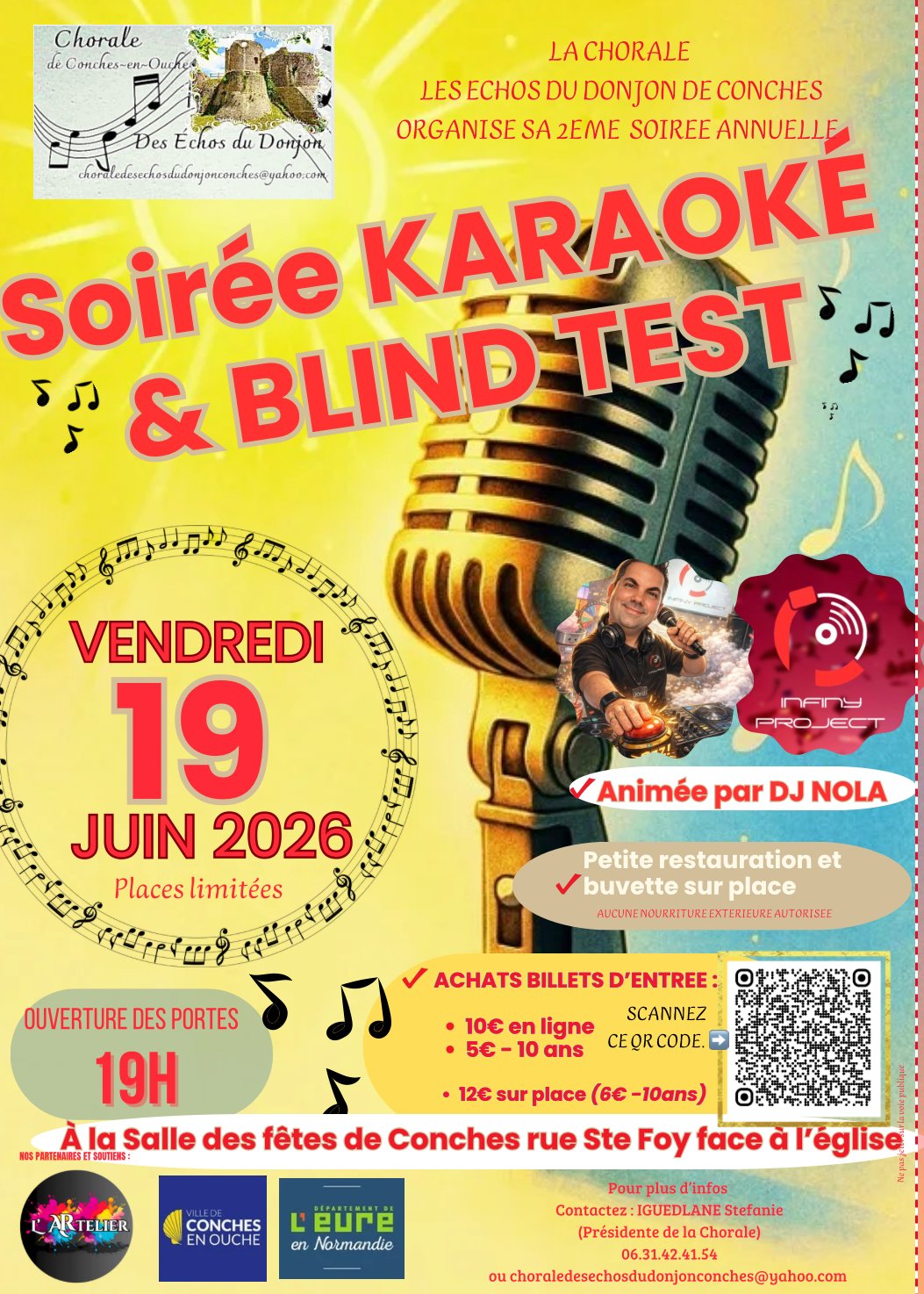 ce karaoké sera précédé d’un blind test où il vous faudra reconnaître des extraits de musique ou chanson ,et d’un concert de notre chorale pour vous présenter notre nouveau répertoire de la chanson française .