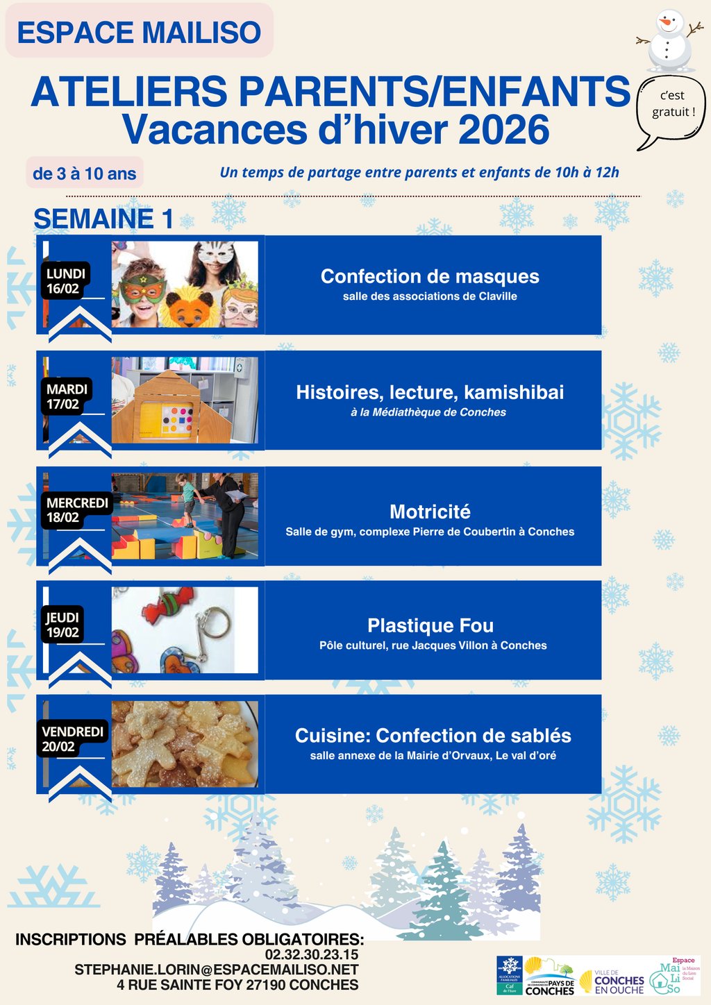 ATELIERS PARENTS/ENFANTS 1 ER SEMAINE VACANCES D'HIVER 2026