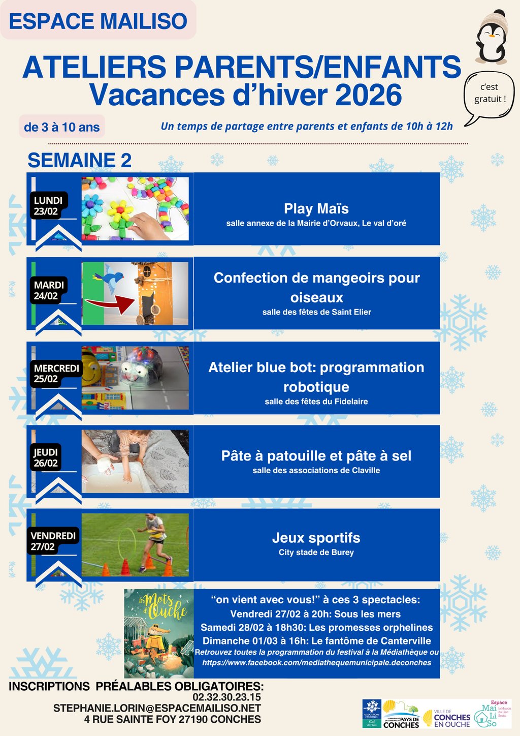 ATELIERS PARENTS/ENFANTS 2EME SEMAINE VACNCES D'HIVER 2026 ESPACE MAILISO